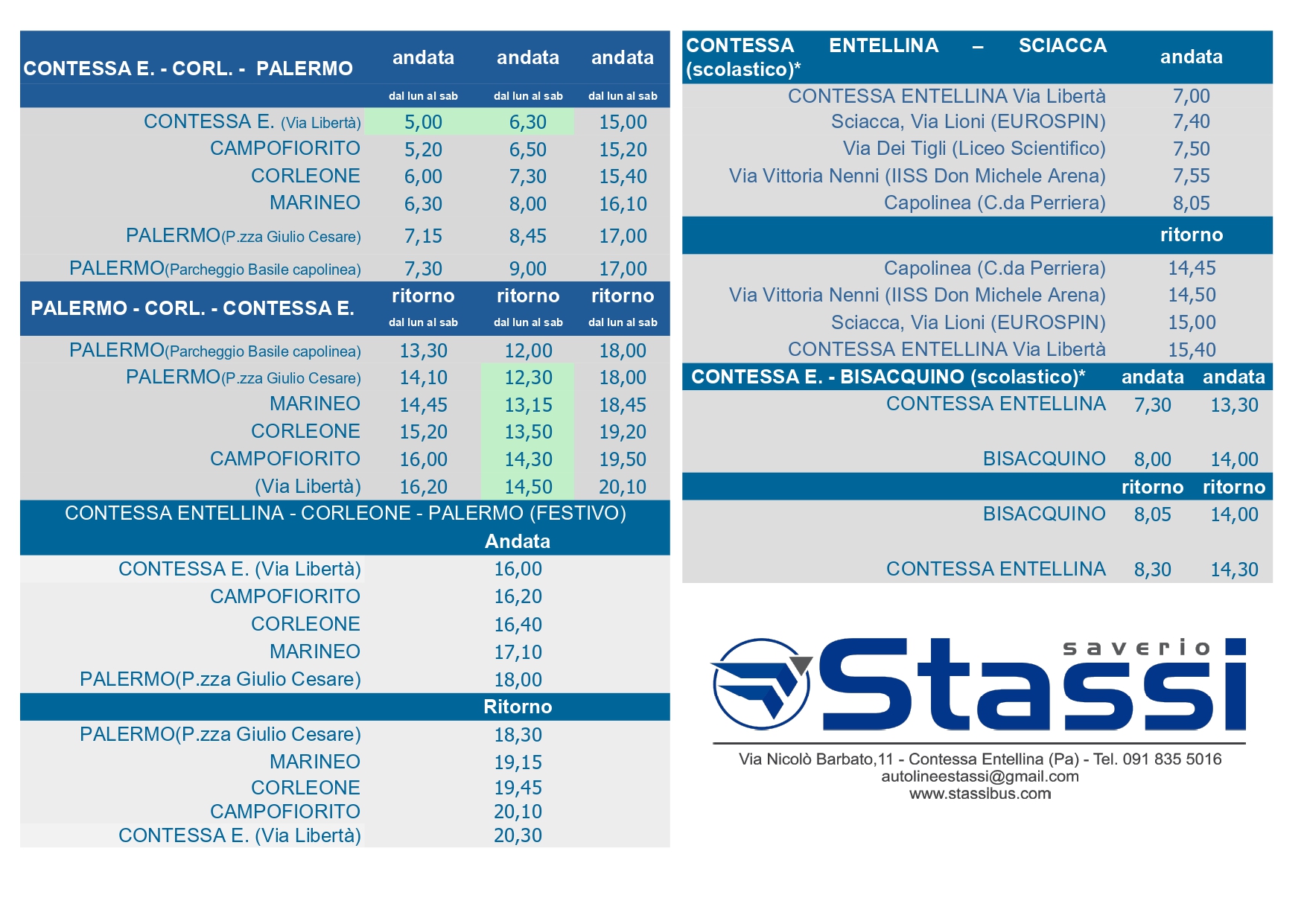 A CAUSA DEI LAVORI CHE INTERESSANO LA GALLERIA DI CORLEONE, A PARTIRE DAL 16.09.2025 i servizi con partenza da Contessa E. alle h5:15 e alle h 06:45 VERRANNO ANTICIPATI RISPETTIVAMENTE ALLE h 5:00 e h 6:30. A partire da lunedì 22.09.2025, la corsa in partenza da Palermo Stazione Centrale alle h12,00 sarà posticipata alle h12,30.